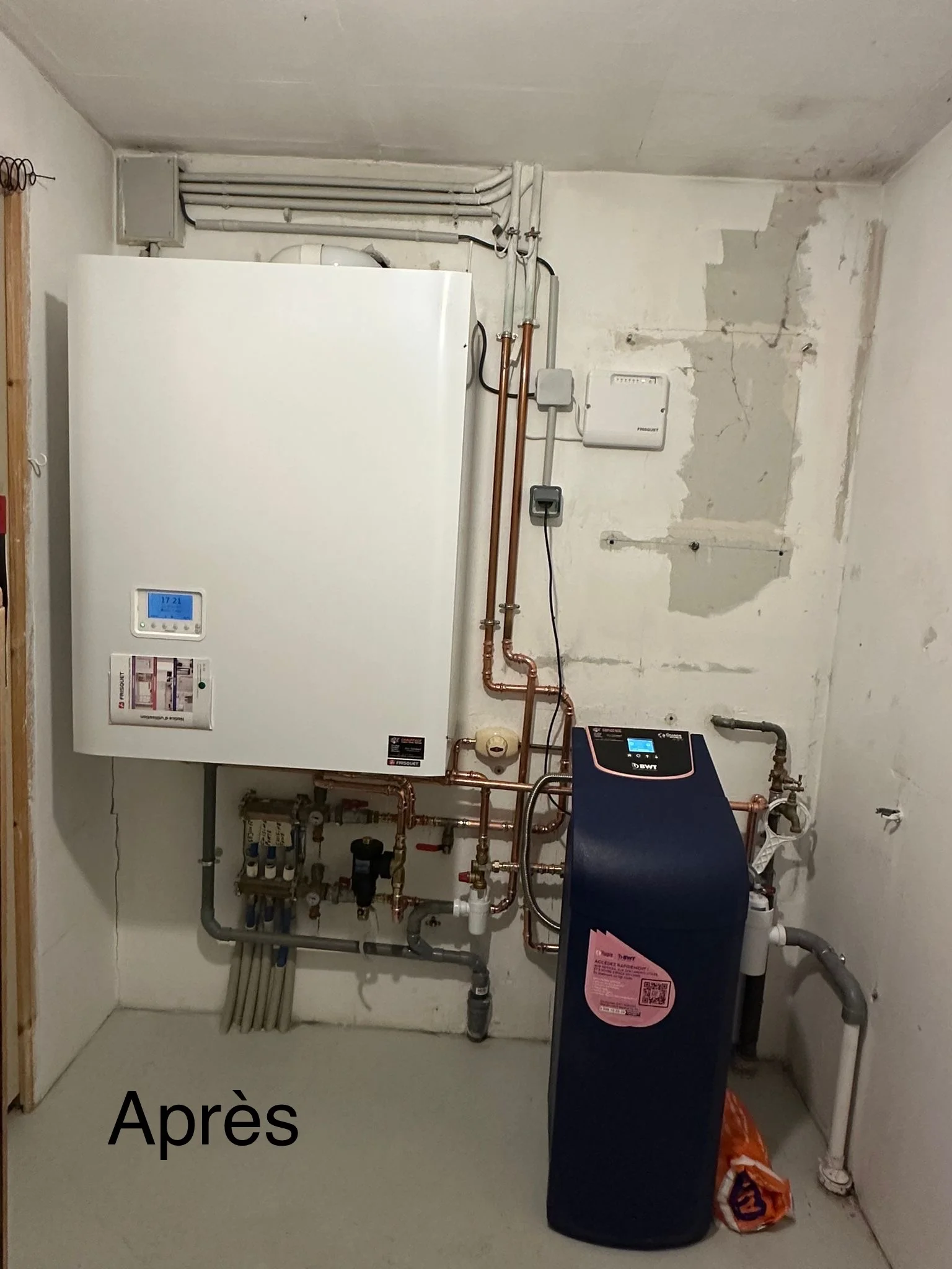 Cette double intervention permet au client de bénéficier d’un chauffage performant et économe tout en préservant la longévité de ses installations grâce à une eau adoucie.