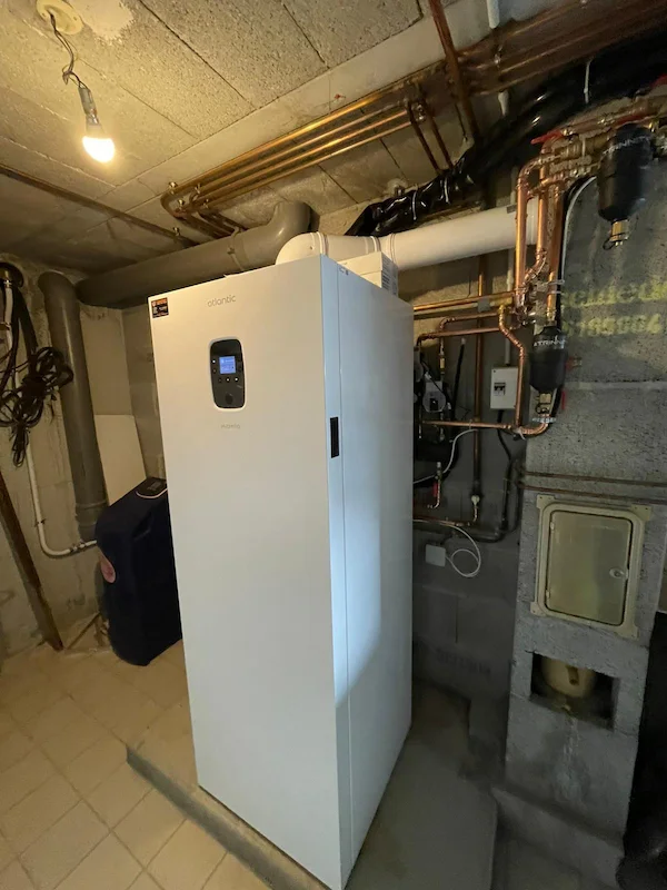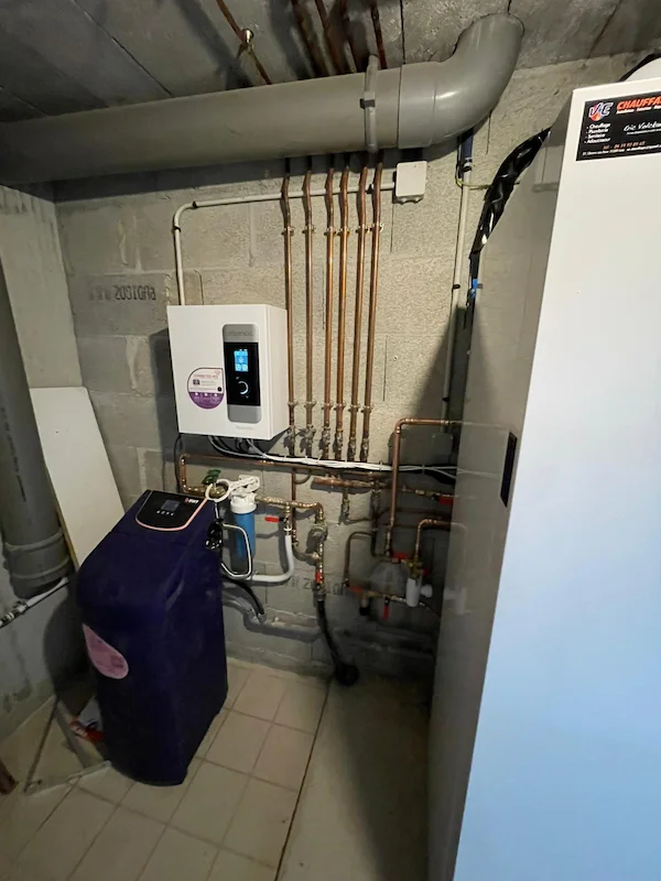 Remplacement de chaudière par une pompe à chaleur hybride gaz Atlantic et installation d’un adoucisseur BWT
